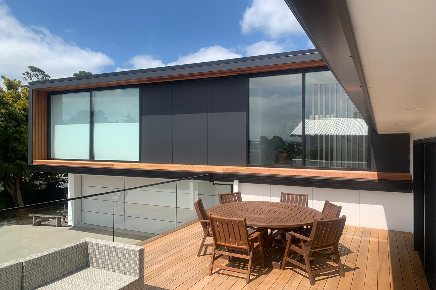 We carefully added a modern 2 storey addition onto their existing home which was seamlessly tied together via a stylish stair well. The addition created a new extra-large garage, 2 bedrooms and a stunning master bedroom complete with walk-in wardrobe and ensuite with views across the valley and out to the Sky Tower. Of course the existing was cared for with a full makeover to match.